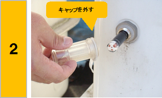 ガスメーターの復帰ボタンのキャップを左に回しキャップをはずしてください。(メーターガス栓は閉めない) |