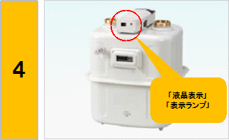 | ガスが止まって、ガスメータ-の表示ランプが点滅していたら、以下の手順で復帰をお願いいたします。ガスもれなどの異常がない場合は、ガスが使えるようになります。 |